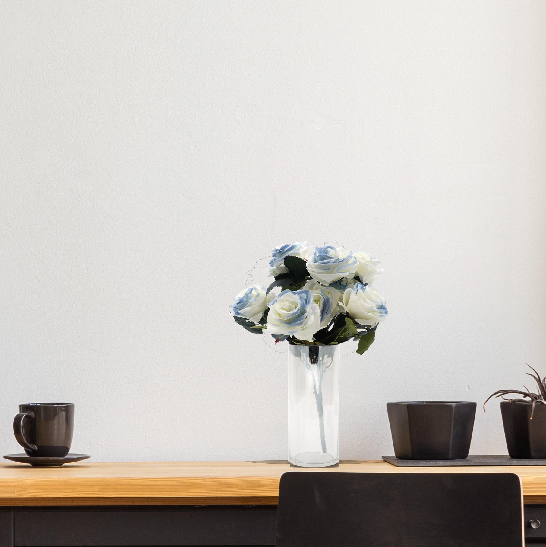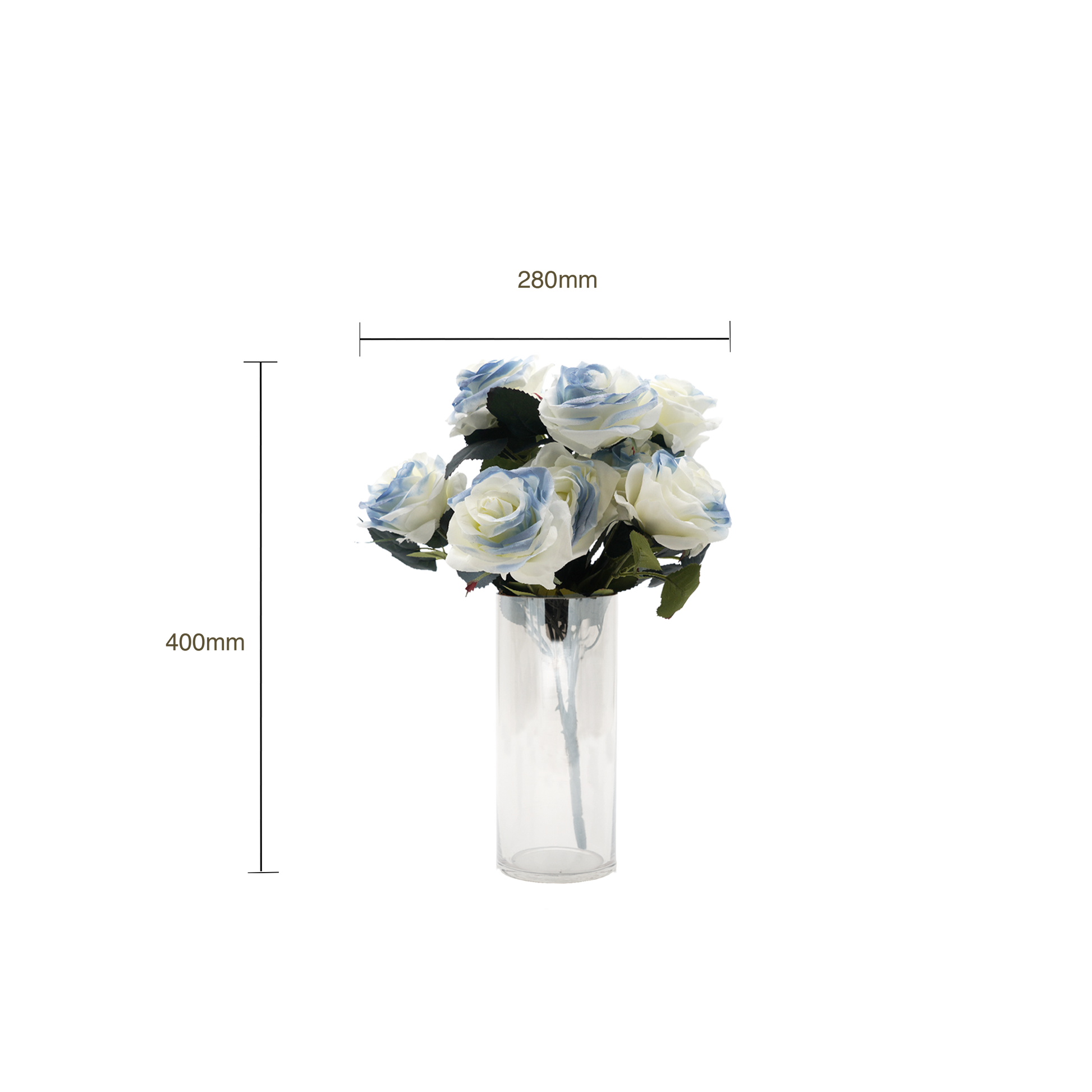 With ten large open heads and green leaves details, our artificial Rose Bouquet will help you create big and vibrant wedding arrangements and bouquets. Or either you can add them to a clear jar, pairing them with light coloured pebbles to give it a simple yet elegant look.